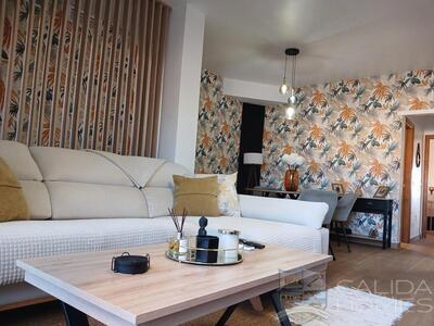 Property Highlights: Two double bedrooms with fitted wardrobes Two, newly installed modern bathrooms (one en suite), Beautiful new kitchen with Silestone worktops & quality appliances, Large lounge/diner with wood-burning fire that opens onto a generous balcony with retractable awning, Private and very good sized roof terrace with sea & mountain views, pergola, and hot tub, Private underground parking & storage room , Small, friendly community with communal pool (closed in winter) Additional benefits include a newly added climate control system, ceiling fans, and intercom system