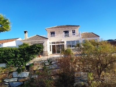 Casa Catkins, constructed over two levels, affords 163 mtrs of living space comprising as follows. A large porch/conservatory ( which has been glazed and fly screened) runs along 3/4 of the villas frontage and with its wonderful views provides a fantastic all year round seating/dining area. There are two sliding doors ( one into the lounge & one into the main lower floor guest bedroom) coming off of the `porch plus the quality wooden front door. This gives access to a central hallway that in turn gives access to all key rooms on this level. Arched access to left leads you, via an under stair utility cupboard, into a the spacious and airy lounge/diner with corner located wood burning fire and two sets of sliding doors ( one out to gardens/pool terrace and other to conservatory). The stylish kitchen ( all appliances to remain) is to the back of lounge, has additional door access out to garden and is replete with granite work tops/kick boards, drinking water system and ample cherry wood effect units. Back to the hall way and to the right of front door this continues giving access to a good sized double bedroom, full family bathroom and the main guest bedroom, A wonderful solid marble staircase takes you off of entrance hall up to the upper level. Here you have a good sized landing area with door access out to a spacious balcony/roof terrace with amazing views and the master bedroom/suite with large double bedroom, that enjoys further access out to the balcony, an en suite bathroom and a walk in wardrobe.