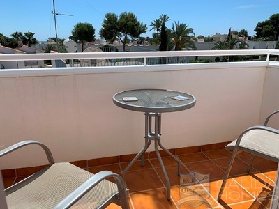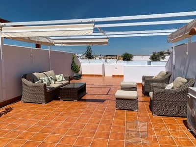 This exceptional apartment is situated on the second floor(72m2) in Vera Play, Puerto Rey. This beautiful 2nd floor, 2 bedroom apartment consists of an entrance hall, an independent kitchen (fully refurbished in 2016), fully equipped with appliances including a built in dishwasher and access to a separate laundry room. There are 2 double bedrooms (the master with fitted wardrobes), 2 bathrooms (the master bedroom has a shower room en suite) and a spacious lounge with dining area and sliding doors with access to a terrace, which the owners have enclosed with sliding glass windows. This property comes fully furnished. The apartment also enjoys a very private roof terrace of 77m2 with sea views. With its outdoor kitchen and 2 sun awnings this is the place to be in summer and winter