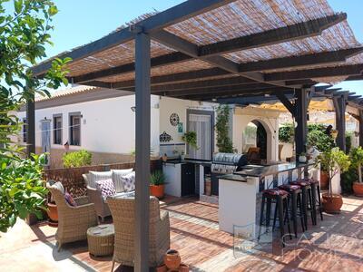 The villa is equipped with a top-tier solar energy system (paired with mains electricity), air conditioning, ceiling fans, and fly screens throughout. Outdoors is where this home truly shines: electric gates lead to off-street parking and a secure front garden, while a private, lushly landscaped rear garden surrounds a pristine 8x4m pool. Several shaded and interlinked entertaining zones, including a stunning summer kitchen/BBQ area with granite counters, retractable awnings, and a sail-covered terrace, provide the ideal setting for dining, relaxing, and enjoying the Andalusian sunshine in complete privacy.