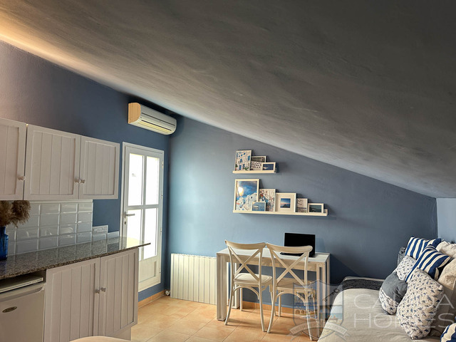 The property, which is immaculate and to a very contemporary style comprises a stunning, bright open plan lounge/kitchen/dining area with access to the outside and air conditioning, ceiling fan and radiators. A modern fitted kitchen with appliances and inbuilt breakfast bar, There is a beautiful and large and bright bedroom with air conditioning, radiator, ceiling fan and door to the en-suite bathroom, there are two further bedrooms and a shower room on this floor. On the first floor there is an open plan 4th bedroom with a kitchenette and direct access out to the roof terrace with an en-suite shower room. This room could lend itself as a 2nd lounge or office. The magnificent roof terrace offers stunning views of the mountains and is the perfect spot for relaxing/sunbathing, star gazing and entertaining as there is a built in BBQ/kitchen area and there is a covered pergola providing shade.
