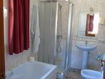 Also off the living room are the bedrooms. To the left a into a small landing there are large fitted his and hers dressing room wardrobes along with doors leading to the master bedroom, with ceiling fan and patio doors to the pool area. The en-suite bathroom is spacious including both a full size bath and separate shower.