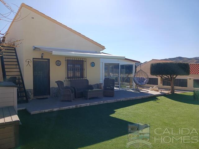 Villa Maisie - A totally re furbished (inside and out) spacious and contemporary 3 bed 2 bath villa in the sought after Los Carrascos community of Arboleas. Just 3 mins drive from Arboleas centre and within walking distance of two popular bar restaurants. Set in 813 mtrs of wonderfully landscaped easy to maintain gardens and with an 8 x 4 private pool, large garage /workshop, additional covered car port, fantastic 45 mtr sun room/conservatory, roof terrace and full solar power system.